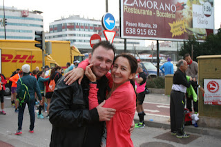 Llegamos, los nervios se van notando, nos hace Carlos un montón de fotos, así pasamos el ratillo, entre abrazos, besos, deseando mucha suerte a los del 10K (sobretodo a mi Isa, la enrolé en esta carrera y menos mal que vinieron, la deseé toda la suerte del mundo, le dije que iba a hacer 52 y así fué, claro, que tuvo la gran ayuda de Bárbara (Gracias)).