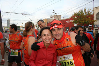 Llegamos, los nervios se van notando, nos hace Carlos un montón de fotos, así pasamos el ratillo, entre abrazos, besos, deseando mucha suerte a los del 10K (sobretodo a mi Isa, la enrolé en esta carrera y menos mal que vinieron, la deseé toda la suerte del mundo, le dije que iba a hacer 52 y así fué, claro, que tuvo la gran ayuda de Bárbara (Gracias)).