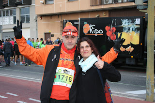 Llegamos, los nervios se van notando, nos hace Carlos un montón de fotos, así pasamos el ratillo, entre abrazos, besos, deseando mucha suerte a los del 10K (sobretodo a mi Isa, la enrolé en esta carrera y menos mal que vinieron, la deseé toda la suerte del mundo, le dije que iba a hacer 52 y así fué, claro, que tuvo la gran ayuda de Bárbara (Gracias)).