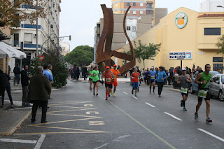 Vuelta en el puerto y para arriba, nos toca subir ahora a nosotros, ayer comiéndonos una paellita en el galeón , hoy corriendo por sus calles, hay avituallamiento, bebo powerade y agua, me hidrato bien , ya que hace algo más de calor, la sudada es muy grande, aunque yo soy de los que suda mucho, Iván me ofrece un trozo de plátano que me viene muy bien., vemos el arco de la medía maratón , pasamos la media en 1:59:15, nos comenta Carlosrunner que hay que llevar la referencia de los carteles de la carrera, porque el desfase luego con el garmín, puede ser de 500 metros tranquilamente y así evitar sorpresas.
